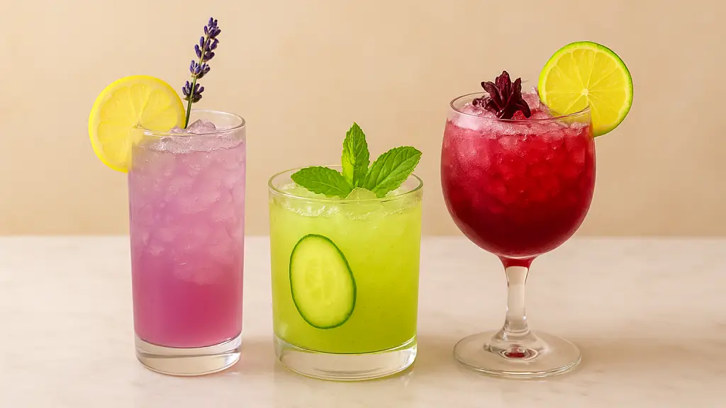 – Lavanda: Una combinación ligera y aromática de almíbar floral, jugo de limón y soda.